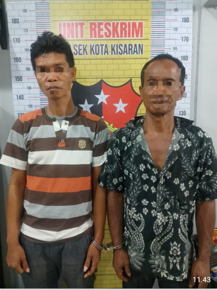 Dua pria berinisial SB (46) dan R (55), keduanya warga Kecamatan Kisaran Barat, kini telah dibawa ke Polsek Kota Kisaran untuk menjalani pemeriksaan lebih lanjut.