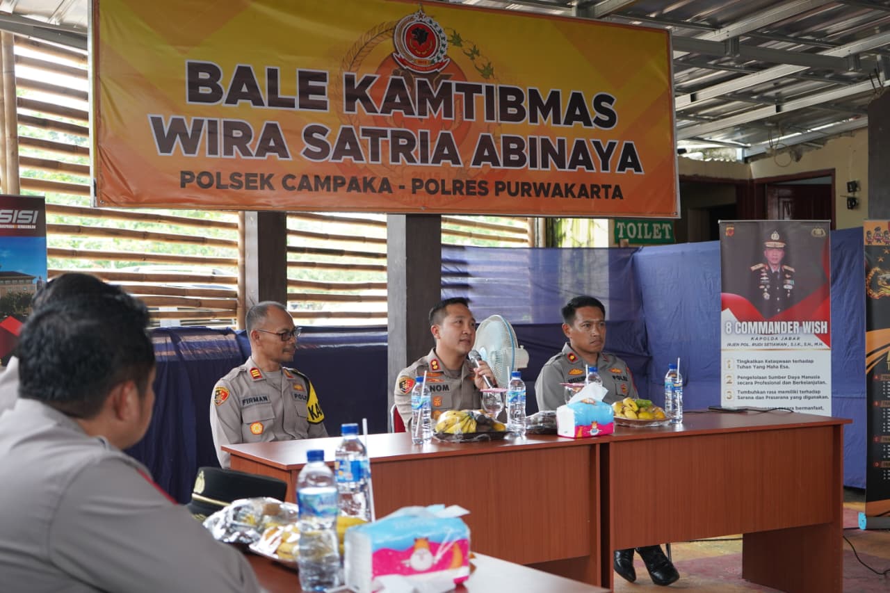 Kapolres Purwakarta AKBP I Dewa Putu Gede Anom Danujaya melakukan kunjungan kerja ke Polsek Campaka, tepatnya di Bale Kamtibmas Wira Satria Abinaya, pada Jumat, 3 Oktober 2025.