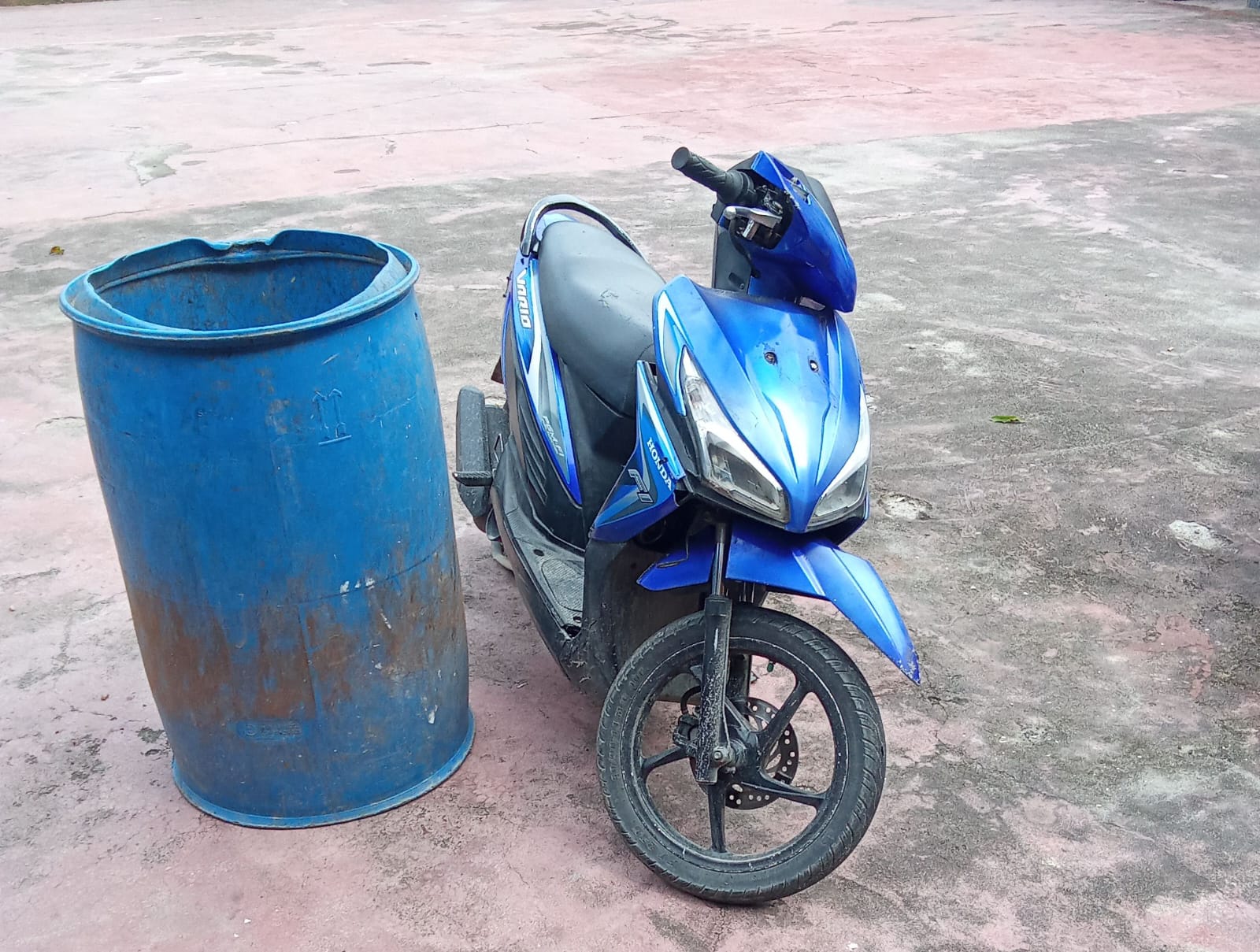 Sementara Sepeda motor Vario warnah biru milik Pelaku, karena keterbatasan anggota Polisi yang datang ke TKP meminta tolong kepada wartawan untuk membawa sepeda motor tersebut ke Polres Asahan.
