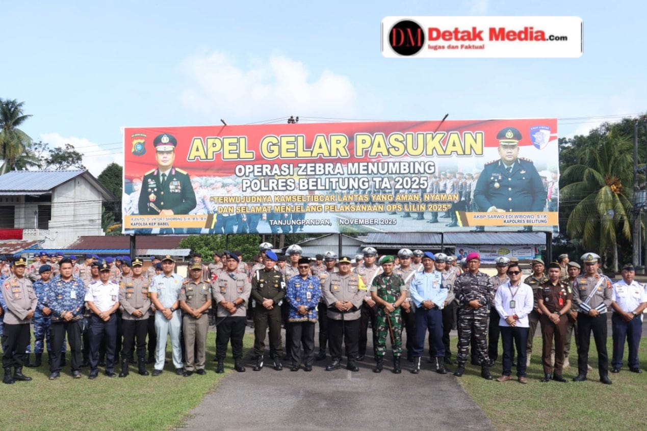 Polres Belitung menggelar Apel Gelar Pasukan dalam rangka Operasi Zebra Menumbing Tahun 2025, bertempat di Halaman Mapolres Belitung, Senin (17/11/2025) pagi.