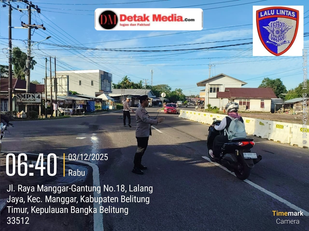 Kepala Bagian Operasi (Kabag Ops) Polres Belitung Timur AKP Nannang Suwardi, S.H. memimpin langsung pelaksanaan kegiatan rutin Strong Point Pagi atau Pengaturan Arus Lalu Lintas di seluruh wilayah hukum Polres Belitung Timur, Rabu (03/12/2205) pagi.