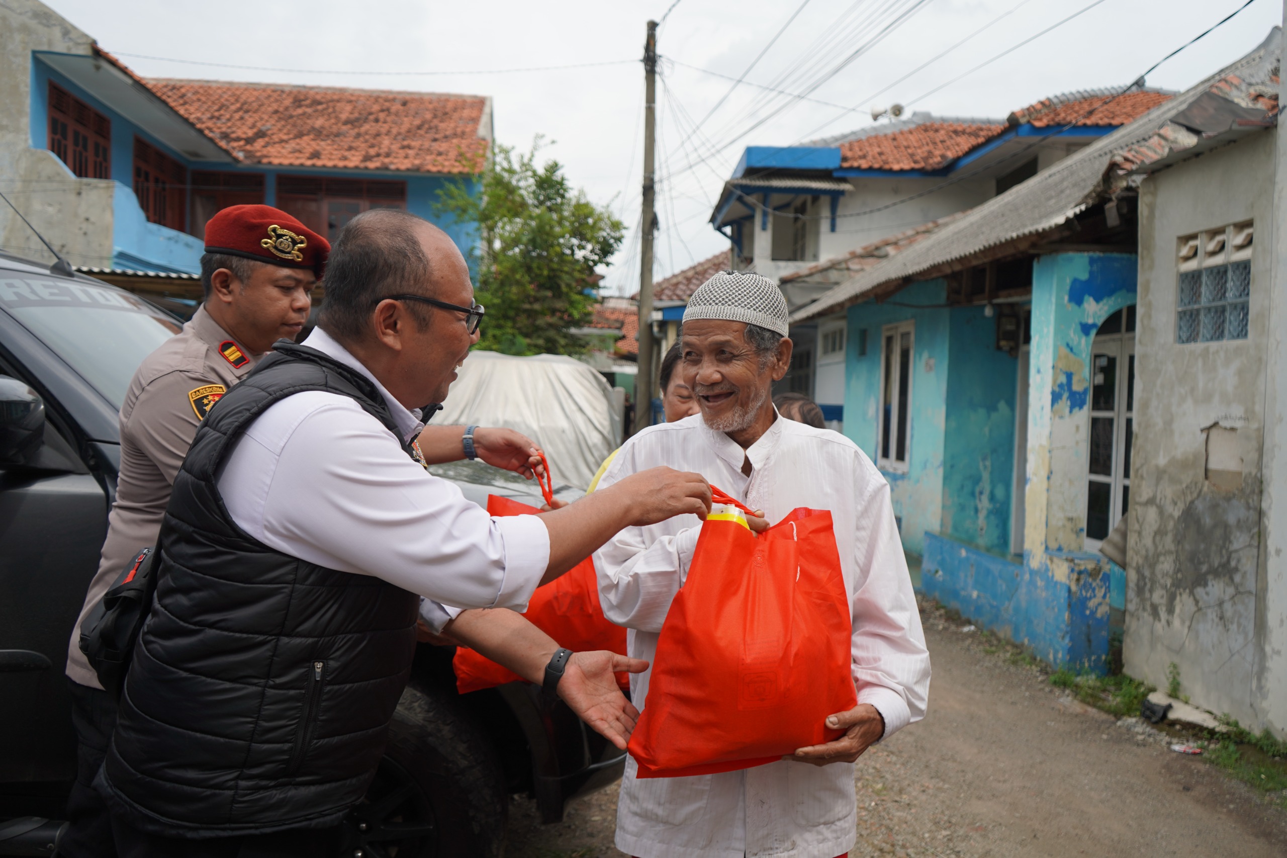 Dalam kegiatan tersebut, personel Sat Reskrim Polsek Purwakarta menyalurkan berbagai bahan kebutuhan pokok, mulai dari beras, telur, minyak goreng, gula, mie instan, hingga paket sembako lainnya.