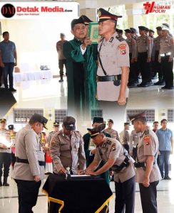 Kapolres Belitung Timur AKBP Indra Feri Dalimunthe, S.H., S.I.K., M.H., M.M. memimpin pelaksanaan serah terima jabatan Kasiwas Polres Belitung Timur di Joglo Graha Patriatama Polres Belitung Timur. Selasa(16/12/2025).