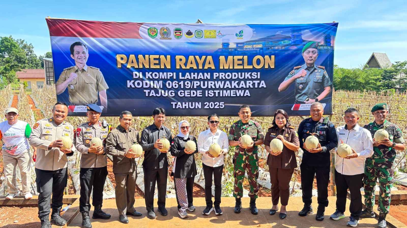 Kapolres Purwakarta, AKBP I Dewa Putu Gede Anom Danujaya diwakili PS Kabag SDM, AKP Randy Freshtiadie hadiri kegiatan Coffee Morning dan Panen Raya Melon Purwakarta di Tajug Gede, Desa Cikopo, Kecamatan Bungursari, Kabupaten Purwakarta, Pada Selasa, 16 Desember 2025.