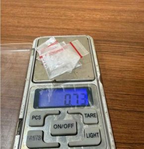 Setelah dilakukan pemeriksaan di lokasi tempat tersangka meletakkan benda tersebut, petugas menemukan satu plastik klip berisi sabu serta puluhan plastik klip kosong. Penggeledahan lanjutan di sekitar lokasi juga menemukan satu unit timbangan digital, sebuah dompet warna hitam berisi 12 plastik klip sabu, puluhan plastik klip kosong, serta tujuh buah pipet skop. Selain itu, turut diamankan uang tunai sebesar Rp230.000 dan satu unit sepeda motor.