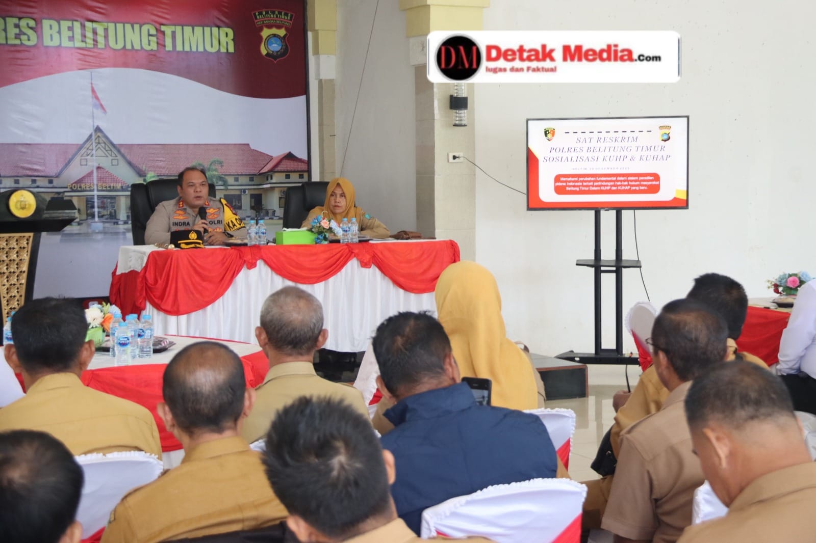 Peserta utama dalam sosialisasi ini adalah para Kepala Desa se-Kabupaten Belitung Timur yang tampak antusias mengikuti pemaparan materi terkait transisi dari KUHP lama ke KUHP Nasional yang baru.
