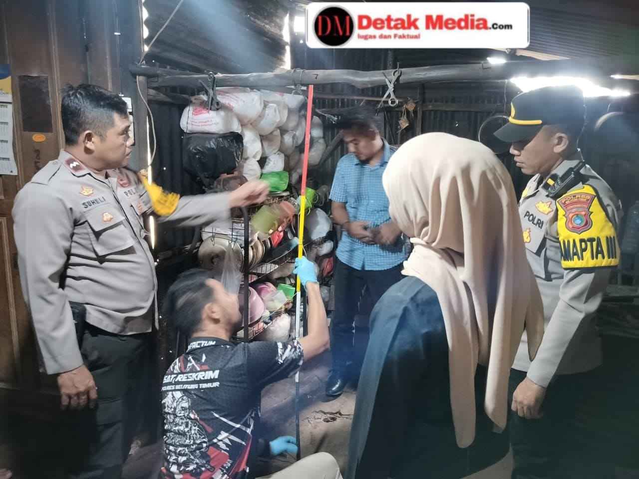 Setelah menerima laporan dari warga dan pihak Puskesmas, Pamapta 3 Polres Beltim langsung memimpin personil piket Polsek Manggar dan Unit Identifikasi (Inafis) Sat Reskrim untuk melakukan pengamanan serta olah Tempat Kejadian Perkara (TKP).