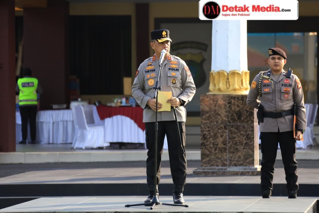 Pada kesempataan ini, Saya mengucapkan selamat hari raya Idul Fitri kepada seluruh personel. Saya juga ingin menyampaikan ucapan terimakasih kepada anggota Polda Babel karena selama pelaksanaan operasi, pelaksanaan tugas, sebelum, ketika dan pasca hari raya Idul Fitri semua berjalan dengan baik dan sesuai jadi harapan kita,”kata Viktor mengawali sambutan.