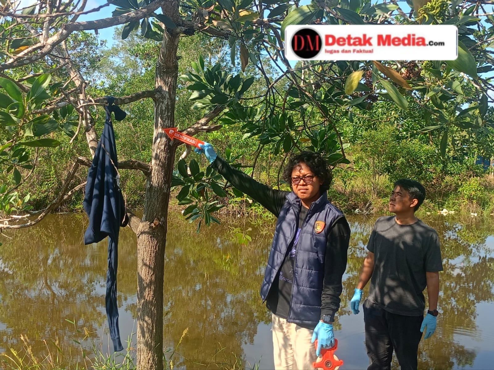 Personel Polsek Gantung bersama Unit Identifikasi Polres Belitung Timur melakukan olah Tempat Kejadian Perkara (TKP) terkait penemuan seorang pria yang meninggal dunia akibat gantung diri di Jalan Aik Mahok, Desa Gantung, Kecamatan Gantung, Minggu (26/04/2026).